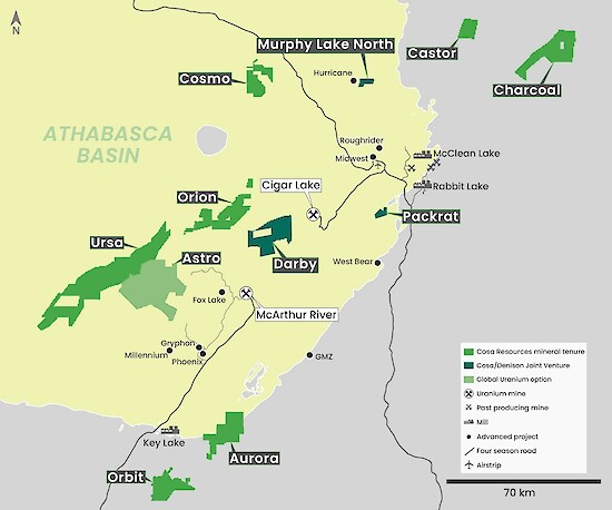 Vancouver, British Columbia, January 21, 2026 – Cosa Resources Corp. (TSX-V: COSA) (OTCQB: COSAF) (FSE: SSKU) (“Cosa” or the “Company”) is pleased to announce drilling plans for the Company’s Darby and Murphy Lake North (“MLN”) projects (Figure 1). Darby and MLN are joint ventures (the “Joint Venture”) between Cosa and Denison Mines Corp. (“Denison”) (TSX: DML) (NYSE American: DNN) and are located 10 kilometres west of Cameco’s Cigar Lake Mine and three kilometres east of IsoEnergy’s Hurricane Deposit, respectively, in the eastern Athabasca Basin, Saskatchewan. Cosa is the operator of both projects and holds a 70% interest with Denison holding a 30% interest in each.
